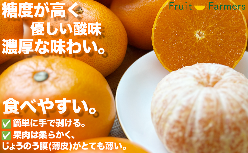 とろける甘さとジューシーな果汁が魅力の「せとか」。ひと口ほおばれば、濃厚なコクと上品な香りが口いっぱいに広がります。皮がむきやすく、薄皮ごと食べられるので手軽さも抜群。冬から春だけの贅沢な味わいを、ぜひお楽しみください。